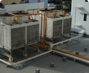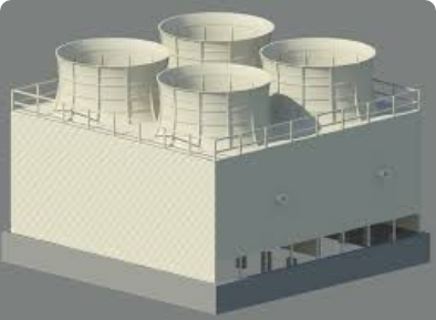 This type of Cooling towers are made from treated timber. All Structures are timber and cladded with Asbestos Corrugated Cement Sheets. The Fan Assembly is made of M.S. Hot Dip Galvanized Steel or FRP, Fan Blades are made from Aluminum Casting or FRP. Fasteners are HDG, nails are S.S.